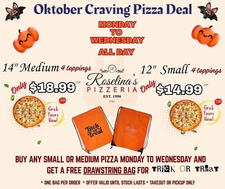 🍕 14" $18.99 | 12" $14.99 (4 toppings) Mon–Wed only!